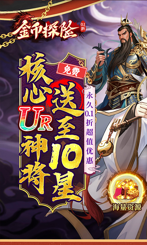 乱世启幕,福利狂燃!《金币探险(三国0.1折送满星神将)》重磅来袭,主打0.1折爽玩三国放置卡牌核心,以轻松护肝为核心亮点,彻底打破传统三国卡牌的肝度桎梏与氪金壁垒,让每一位玩家都能低成本畅玩乱世三国。在这里,离线也能自动刷怪拿资源,无需熬夜肝度,碎片时间就能轻松养成满星神将;独创「武将链接」机制,无需重复抽卡内卷,新武将直接继承已有UR+武将的星级与属性,零成本就能毕业核心阵容;首充仅需0.1元,福利拉满,不肝不氪也能轻松凑齐神魔国家队,执剑驰骋乱世三国,执掌风云、称霸一方!